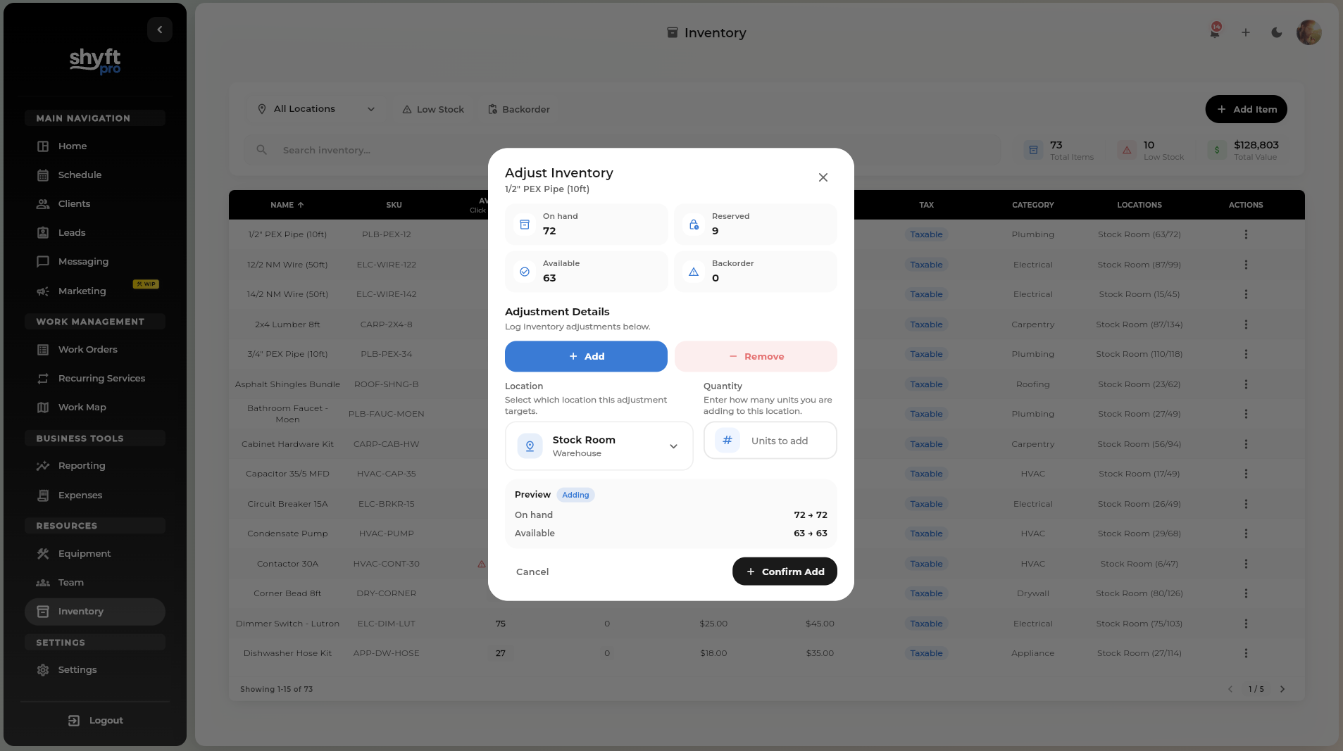 Keep track of your parts and materials. Monitor inventory across multiple locations, manage stock levels, and automatically track usage when jobs are completed.